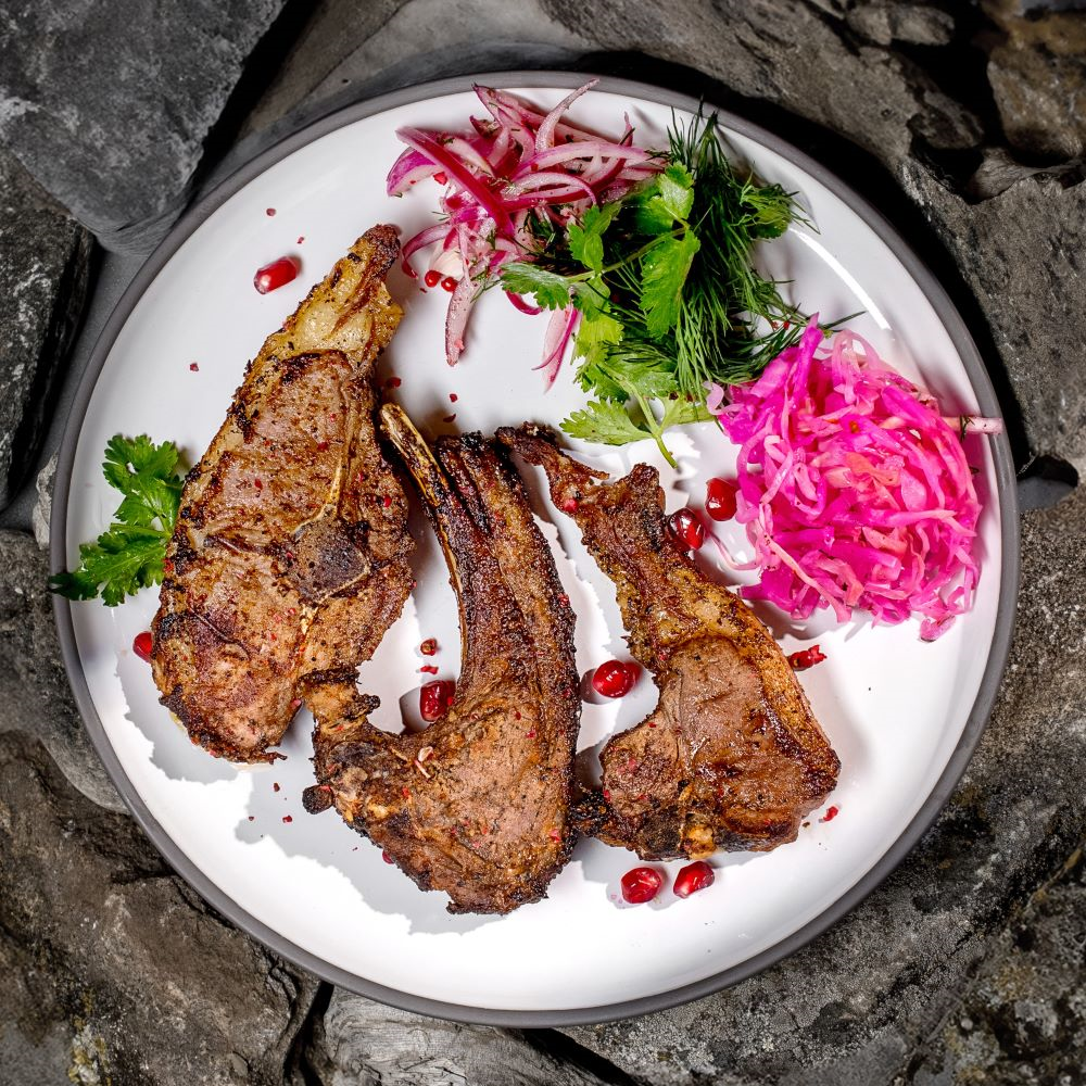 корейка барашка, маринованные овощи, зелень