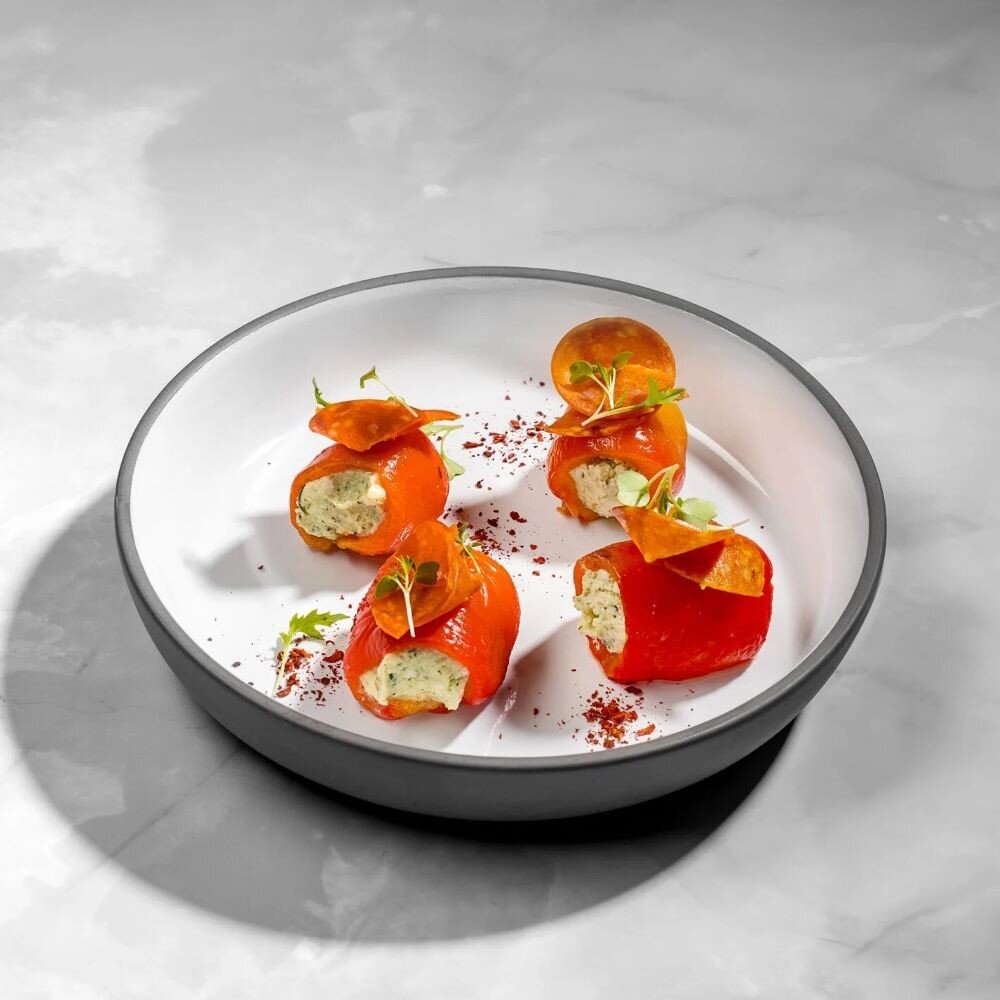 Рулетики из печеных перцев с домашним сыром и чоризо