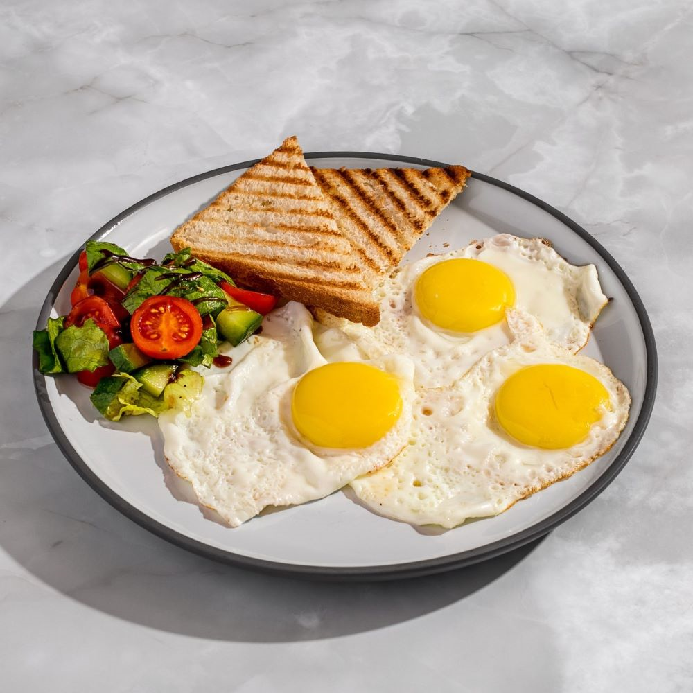 яйца, овощной салат, тостовый хлеб